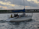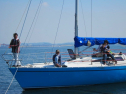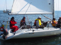 その後、西の風が吹き出し、第一マークは、第二集団艇が団子で回航。