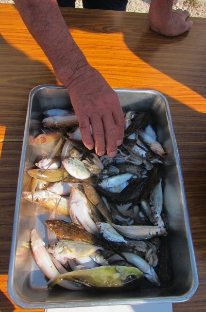 BBQ後、リベンジをと、高校生男子三人が、<CooCoo Smile>で、再チャレンジ。空港島の北西角のワンポイントで、アジの入れ食い。良い型35匹を、竿3本、40分ほどでつり上げました」。