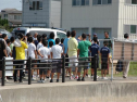 陸上訓練終了 海上保安庁による安全講話 落水者救助デモンストレーション