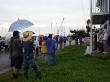 【陸上訓練】 サンドレッド投法、ライフジャケットの実演デモ。AEDの使用方法のチラシ配布。 消防署の実演は無し。 【海上訓練】