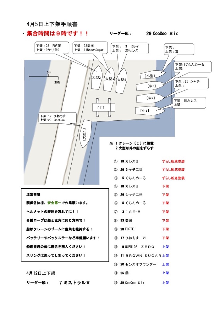 リーダー艇はCooCooSixで当日点呼、注意事項周知実施お願いします。