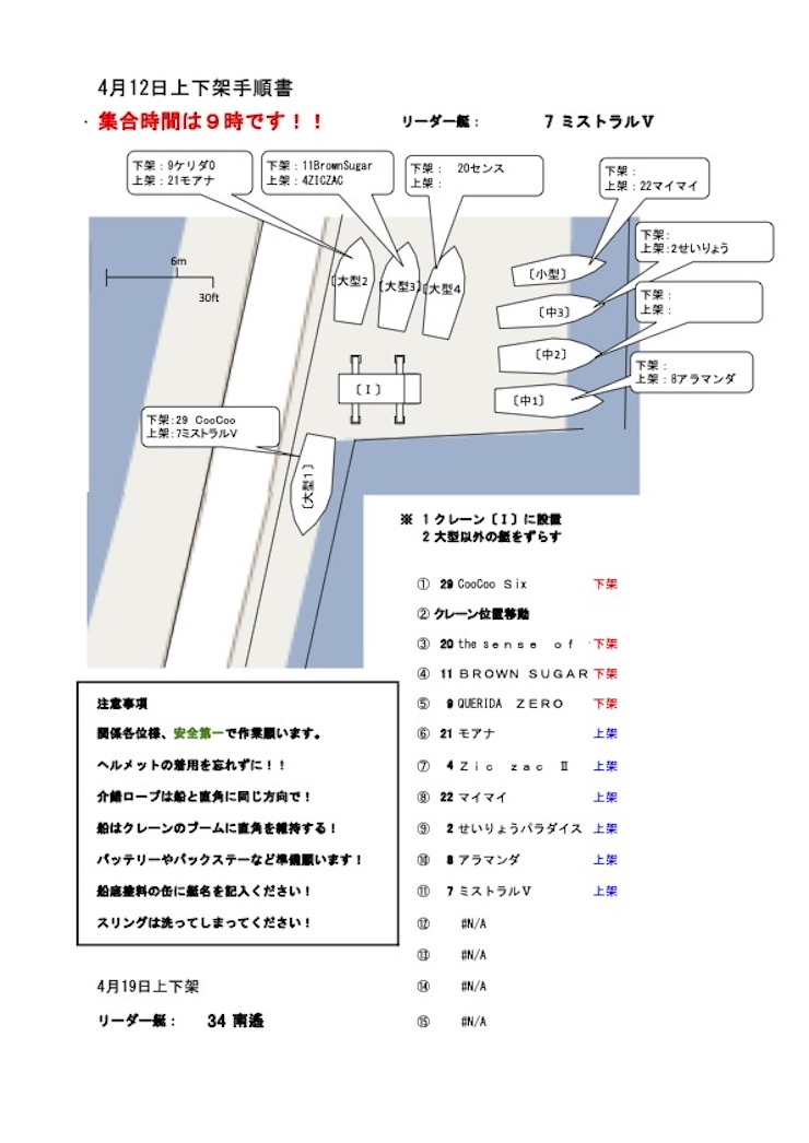 リーダー艇はミストラルVで当日点呼、注意事項周知実施お願いします。
