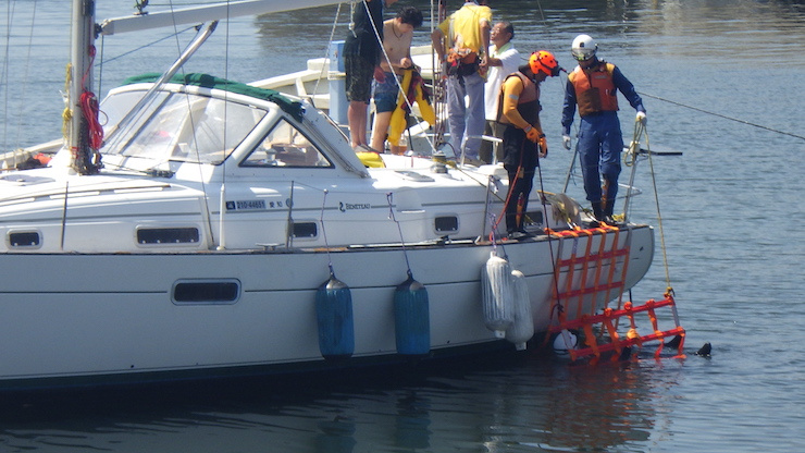 ※以前は「落水者を風下から救助する。」とされていたが、風下からではヨットが風により落水者から離れてしまうので風上側」から救助を行う。