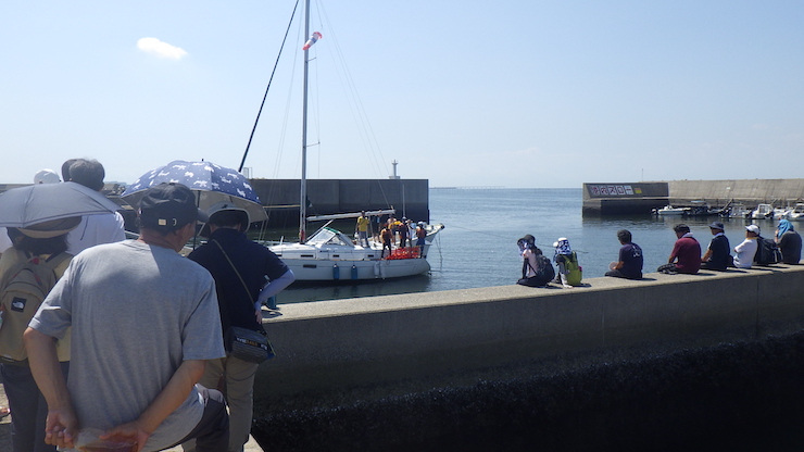 本部艇の山本安全委員長からアマチュア無線とVHF無線で各艇を呼び出し、無線を持つ艇は本部艇に応答する。